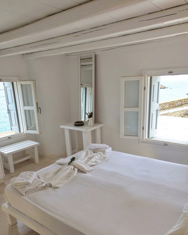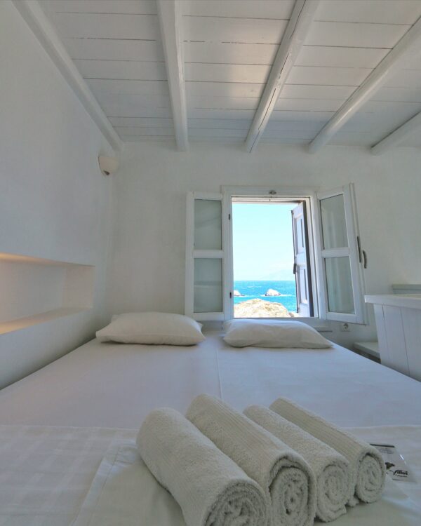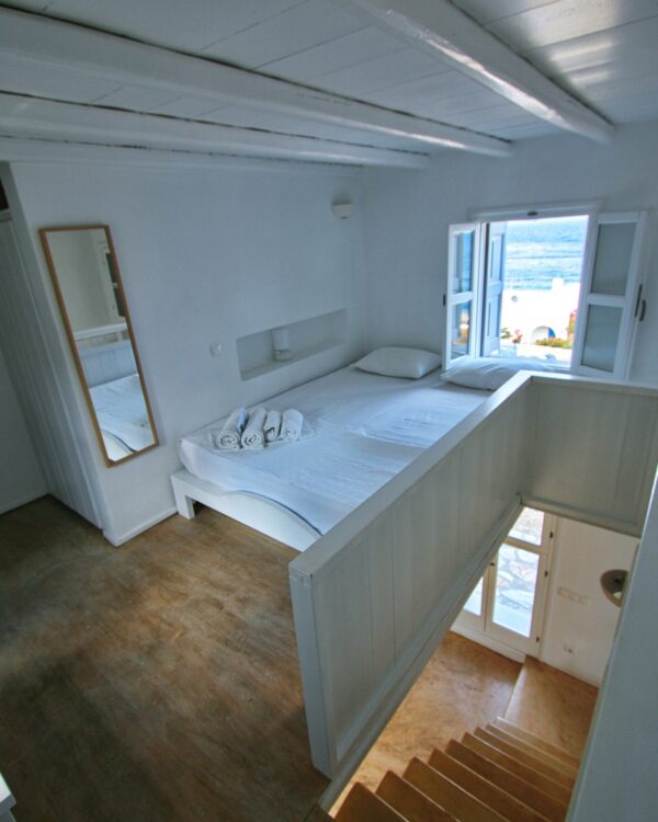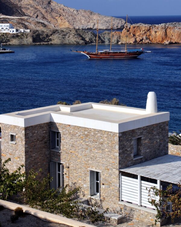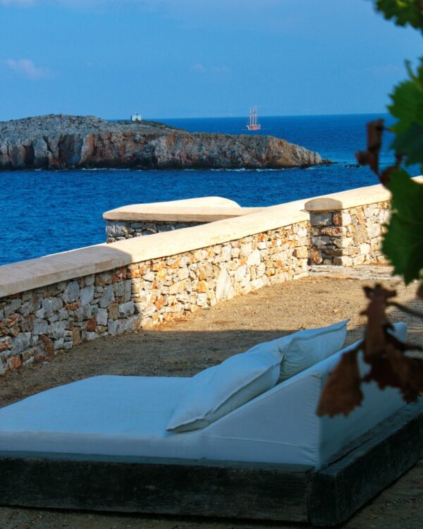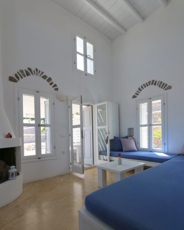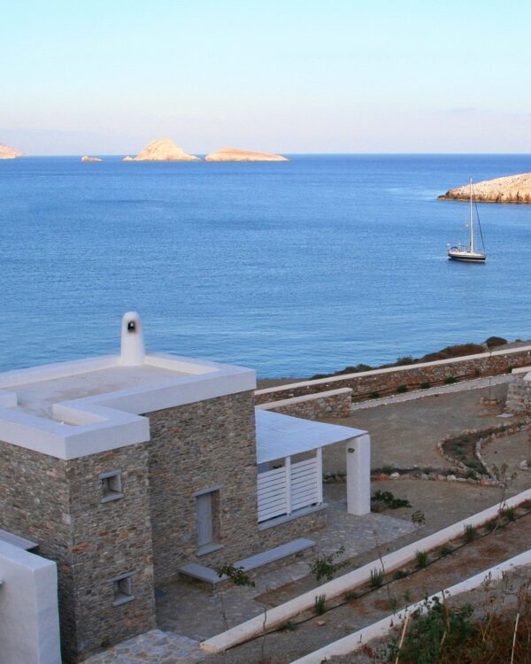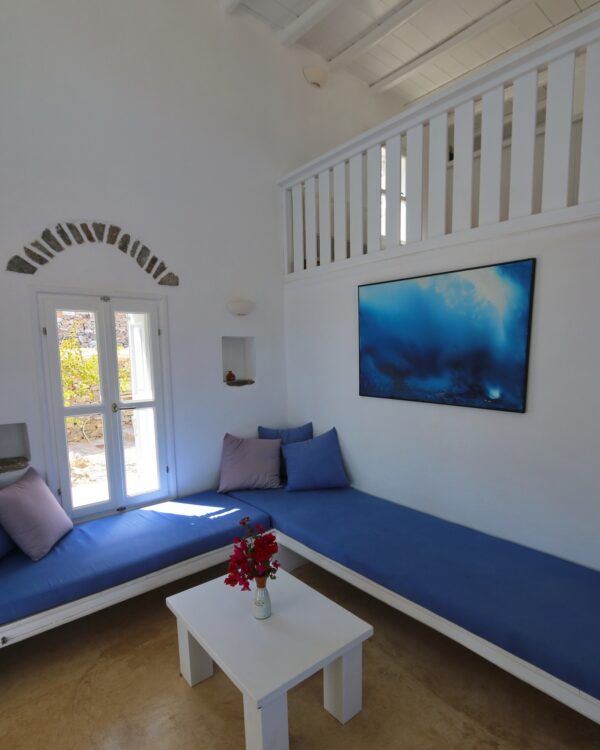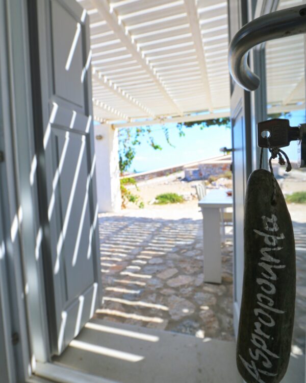 The Lighthouse of Aspropounta located on the southwest side of the island, gazes the sea from its particular position, as the villa in which it has given its name, with the highly prestigious position in the estate. Besides, the second independent lounge level that the villa provides, can accommodate its visitors, giving them special moments by having the feeling that they are in a separate isle with magnificent view of the sea, like the one from the small island in front of the lighthouse.