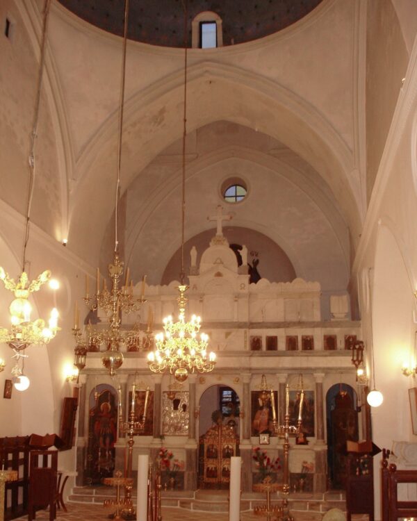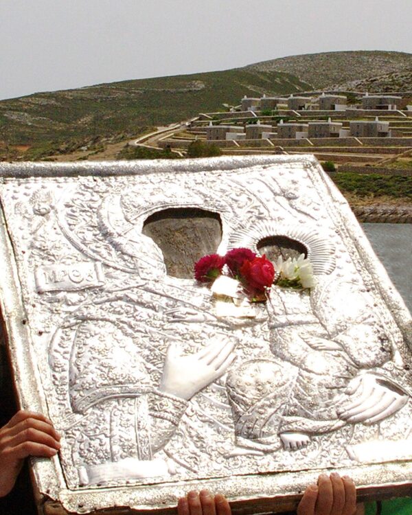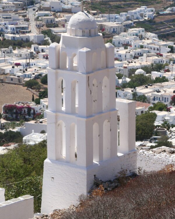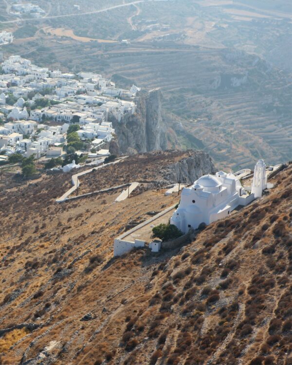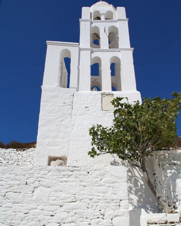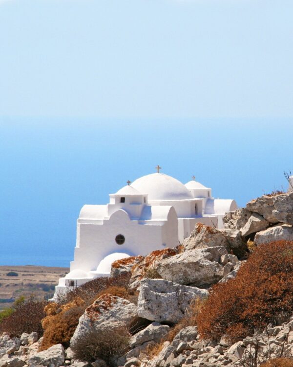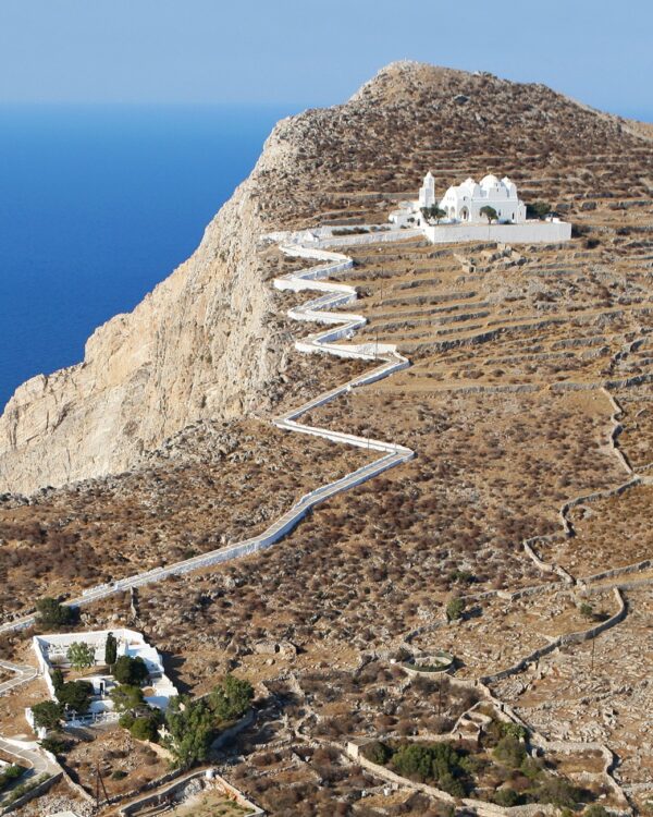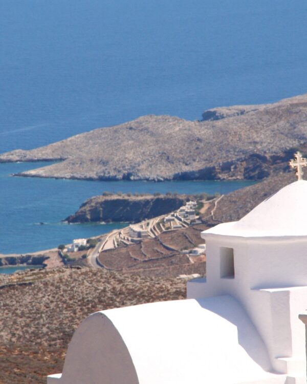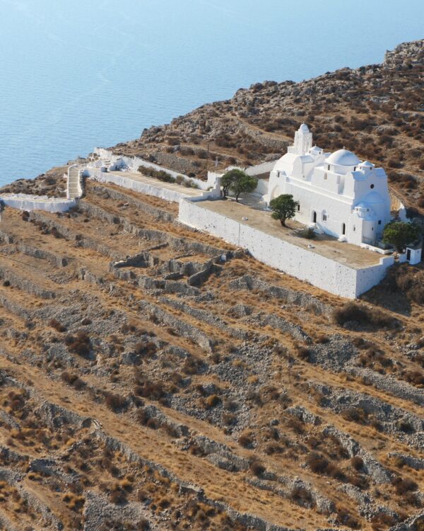 Steep cliffs that cut vertically into the sea, as if watching over her vastness. Over the castle of Chora, imposing, stands the Panagia of Folegandros, a monastery dedicated to the death of the Virgin Mary. Built on 18th century, high on the cliffs, she calmly and gracefully watches over the Aegean, between Milos and Santorini. The miraculous icon of Virgin Maria of Folegandros and the beautiful view from the monastery is the best reward for all visitors.